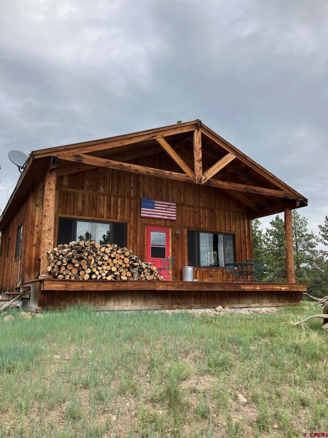 Well taken care of mountain retreat. Custom oak floors, custom sycamore cabinets, gas range, gas wall heaters, woodstove. Picture windows along with a well appointed bathroom with washer and dryer. Vaulted ceilings with picture windows looking to the LaGarita Wilderness area and Sangre De Christo. This cabin is nestled in the trees, cross-fenced for horses and pack animals and neighbor across fence to the west is BLM and the neighbor to the north across the fence is US Forest Service – 1,353,000 acres of treed public lands with lots of game. A sportsman’s high country hunting cabin with grass pasture and wildlife galore – antelope, deer, elk and Rocky Mountain big horn sheep have been spotted on or near the property. Extremely secluded and private property with solar, propane, deep well and 1,000 gallon cistern. Approximately 5 to 6 miles to Continental Divide. PLEASE DO NOT ATTEMPT TO VIEW THIS PROPERTY WITHOUT THE LISTING BROKER. THE PROPERTY IS PART OF OLD BIG VALLEY RANCH. IT IS EASY TO GET TURNED AROUND AND LOST. THIS PROPERTY IS BEHIND A LOCKED GATE WITH LOTS OF TREES AND TRAILS.